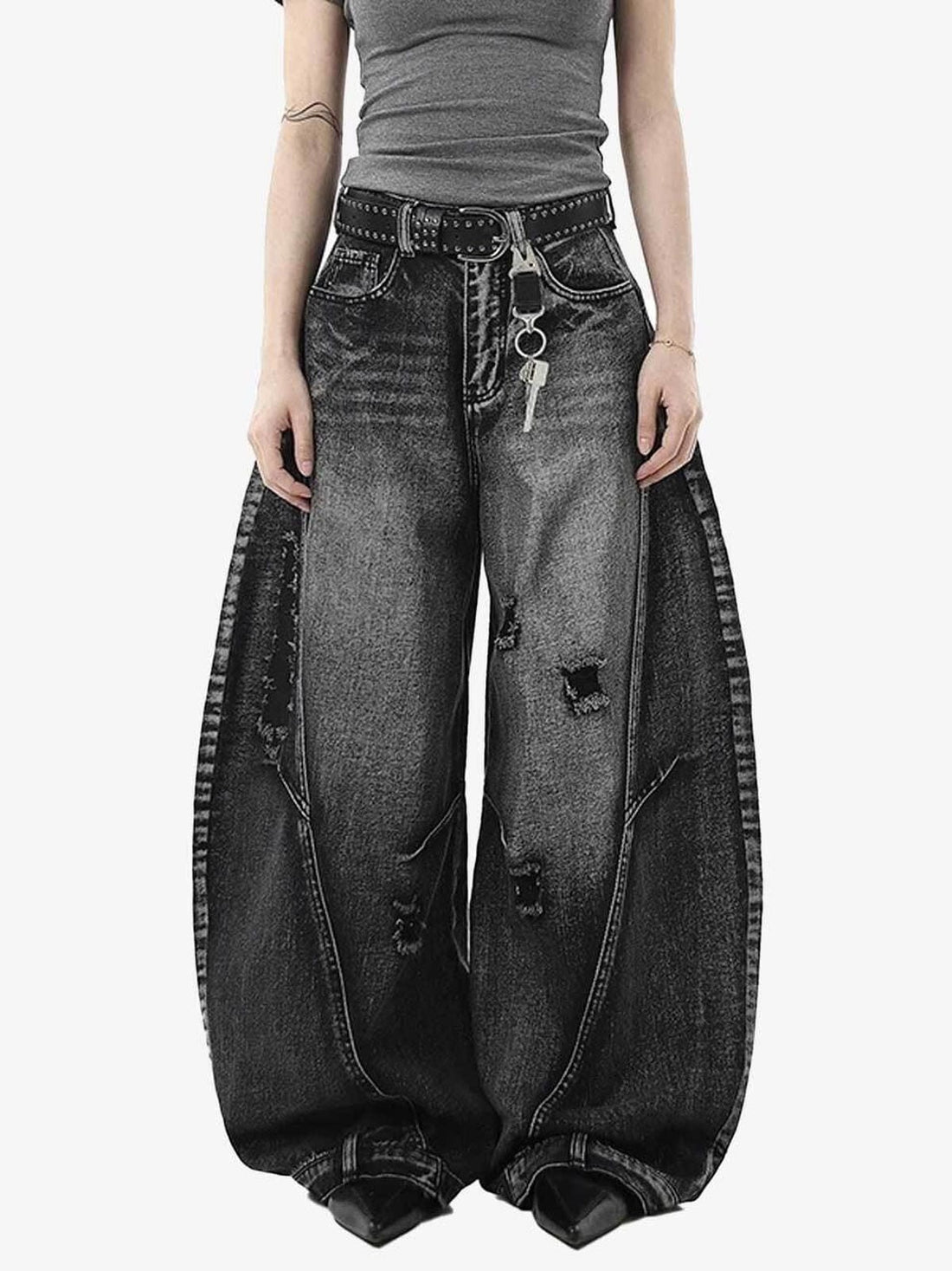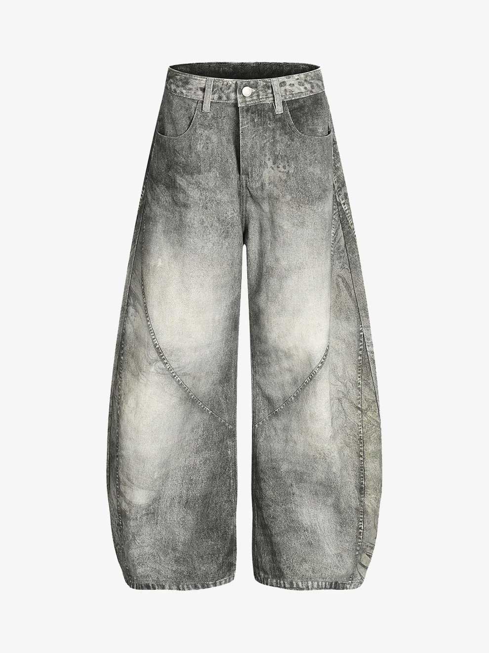 GRAY VINTAGE HEAVY DISTRESSED WASHED BARREL JEANS
