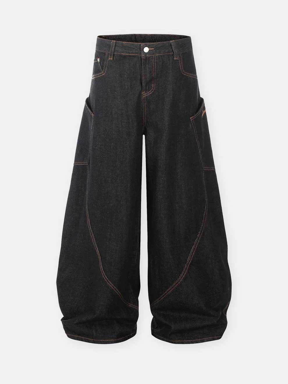 WIDE LEG BLACK BAGGY SIDE POCKET DENIM JEANS