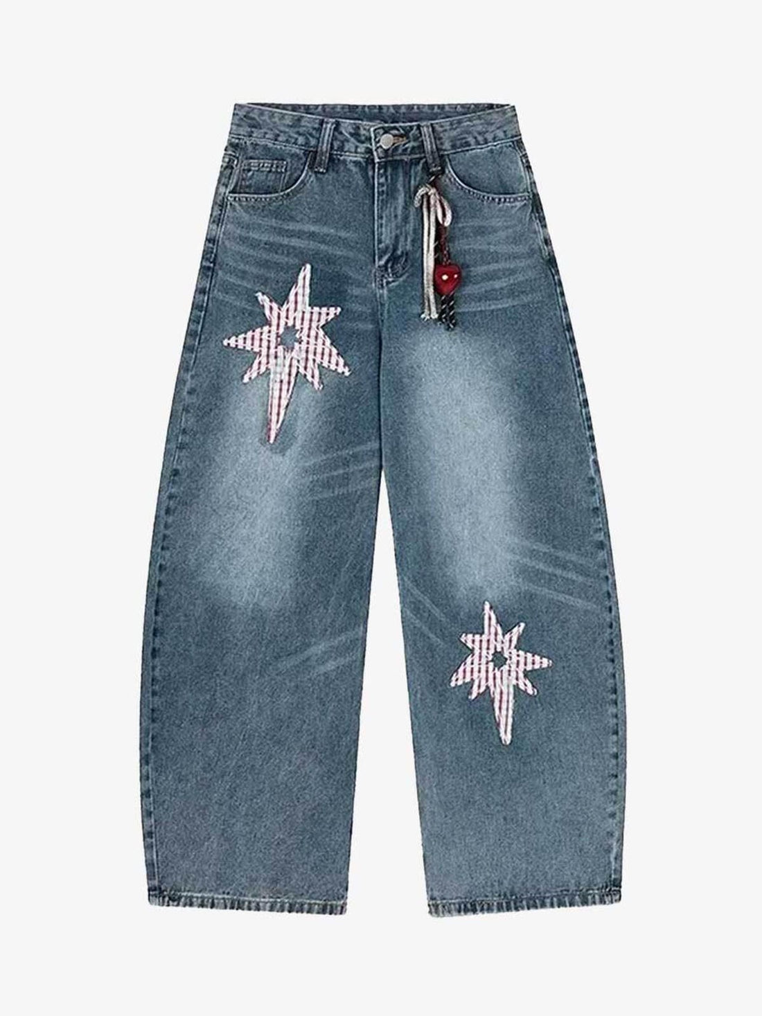 Y2K EMBROIDERED NORTH STARS BAGGY DENIM WIDE LEG JEANS