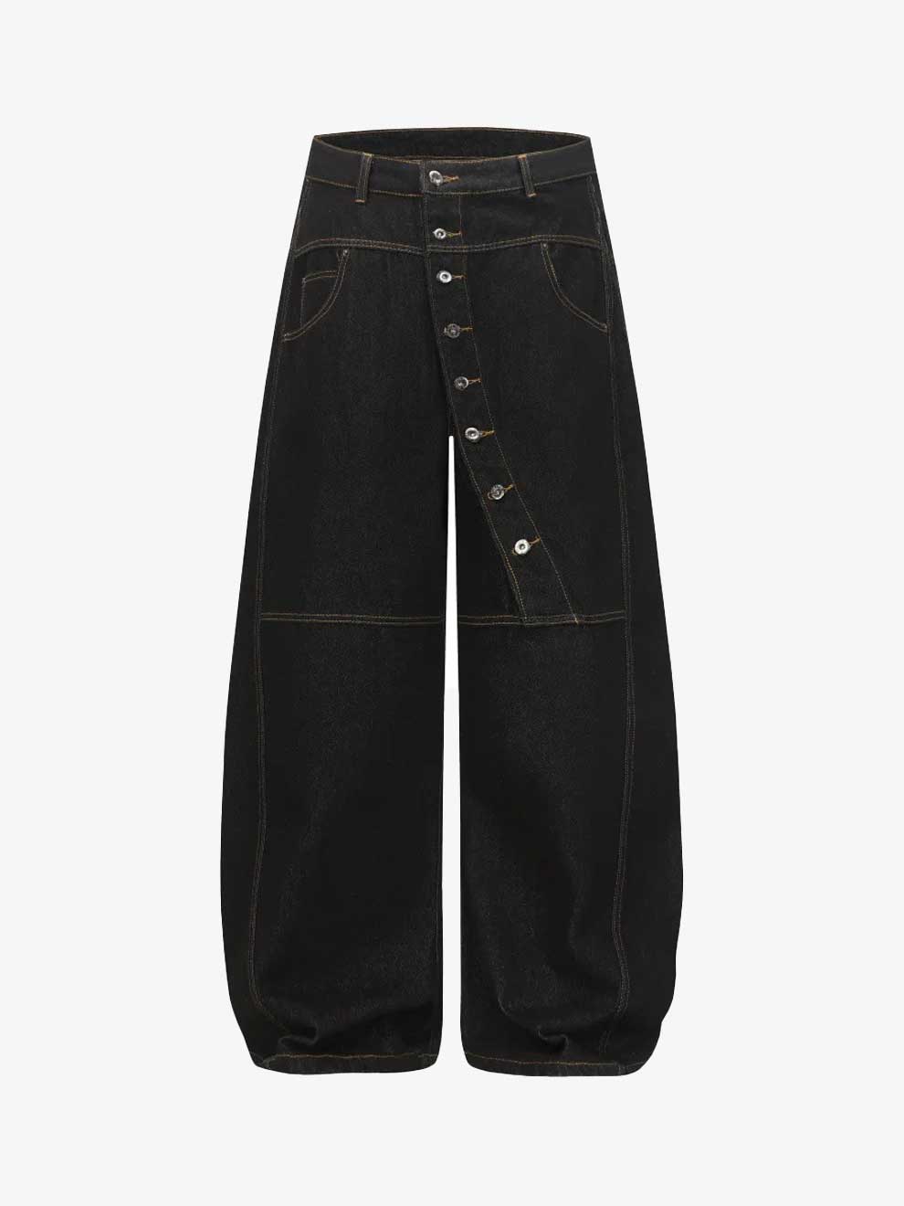 Redefine your silhouette with our Curved Button Fly Raw Denim. Engineered for those who dare...