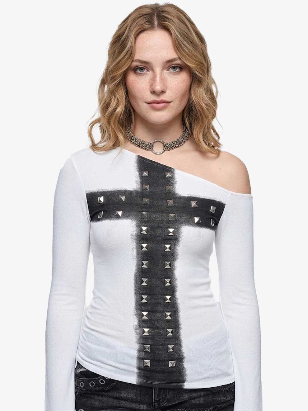 CROSS-OFF Y2K GOING-OUT FEMALE SHOULDER TOP