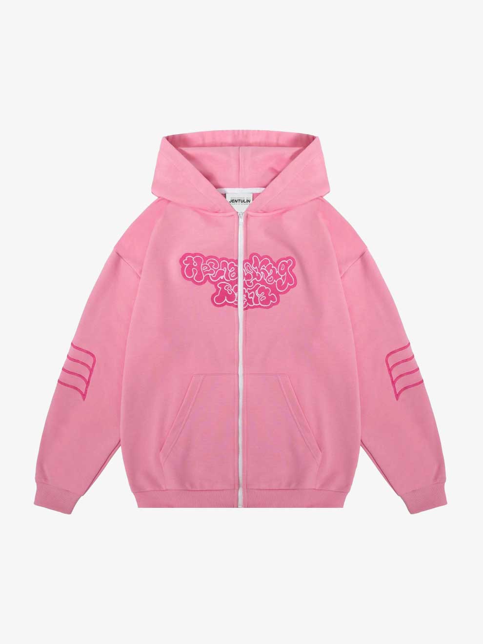 EMBROIDERED PINK Y2K ZIP UP HOODIE
