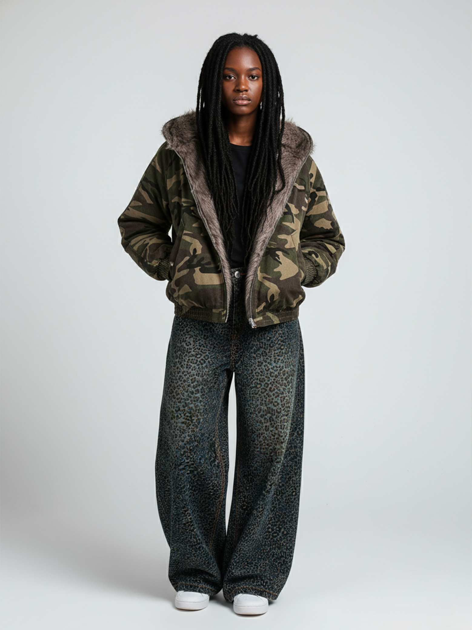 Camouflage Fur-Lined Bomber Jacket - Oversized Y2K Streetwear Hooded Coat