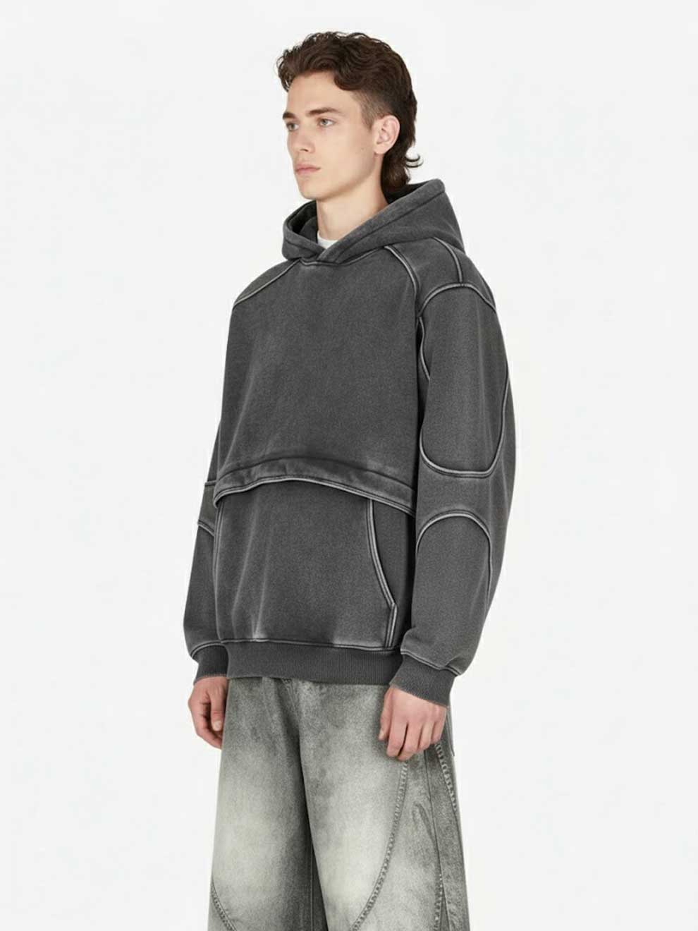 RETRO DECONSTRUCTED PATCHWORK WASHED HOODIE