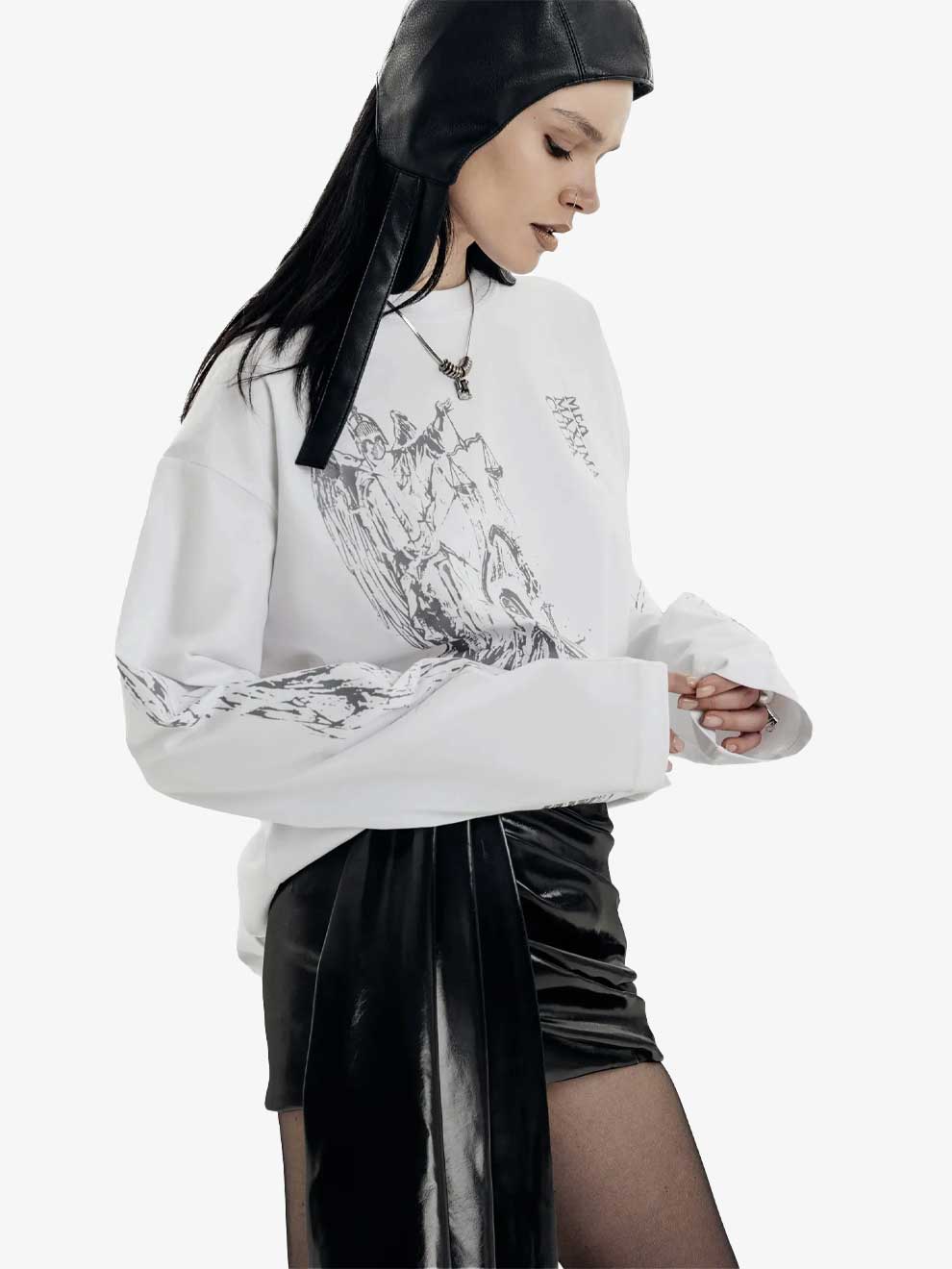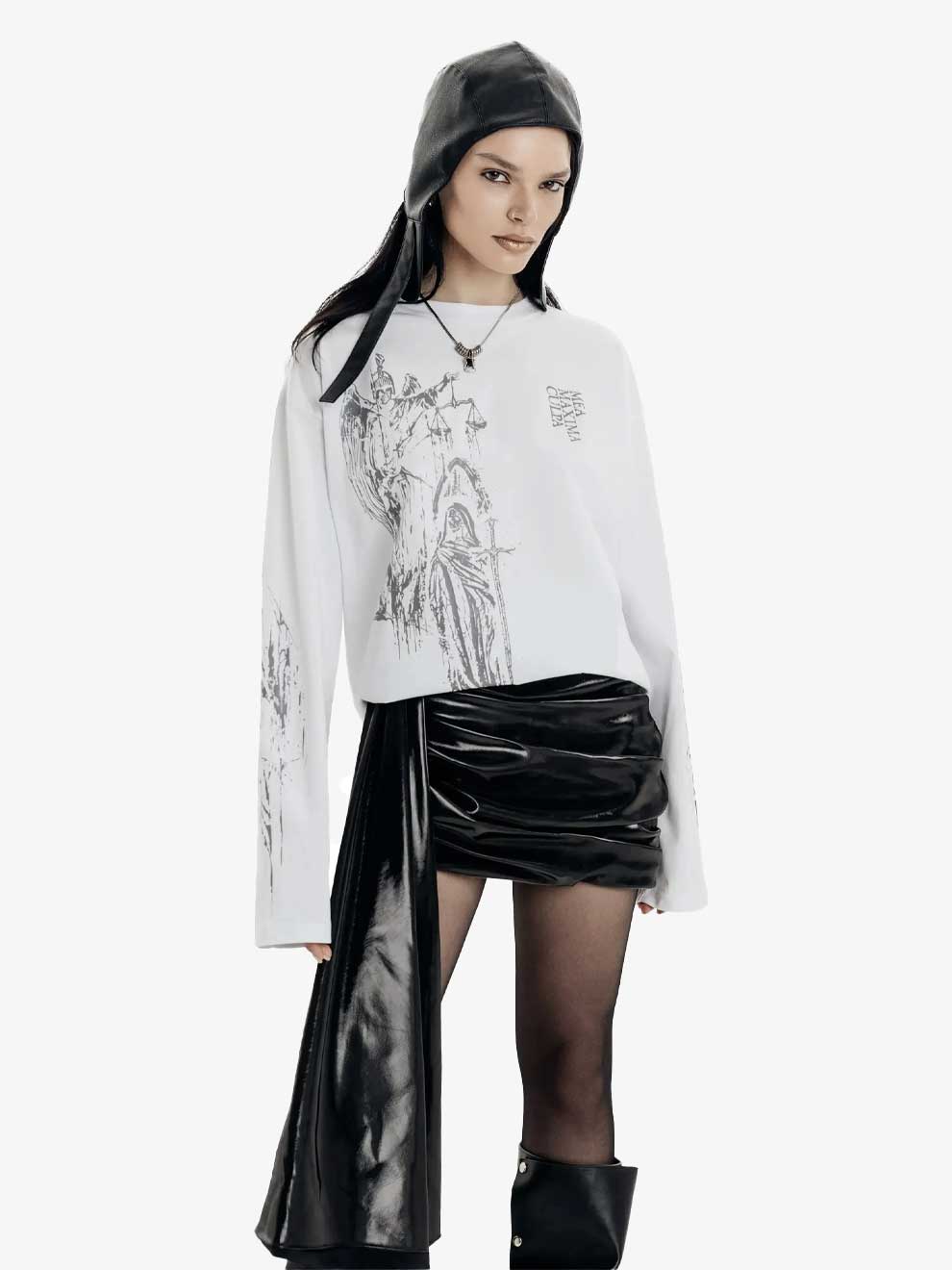 Elevate your rotation with a piece designed to refresh your vibe and break the ordinary. This long sleeve tee features a striking "Mea Maxima Culpa" atrium graphic, blending dark aesthetic art with modern y2k streetwear sensibilities. Whether you're styling y2k outfits or looking for that standout piece for a night out, this shirt ensures you be unique in every room.