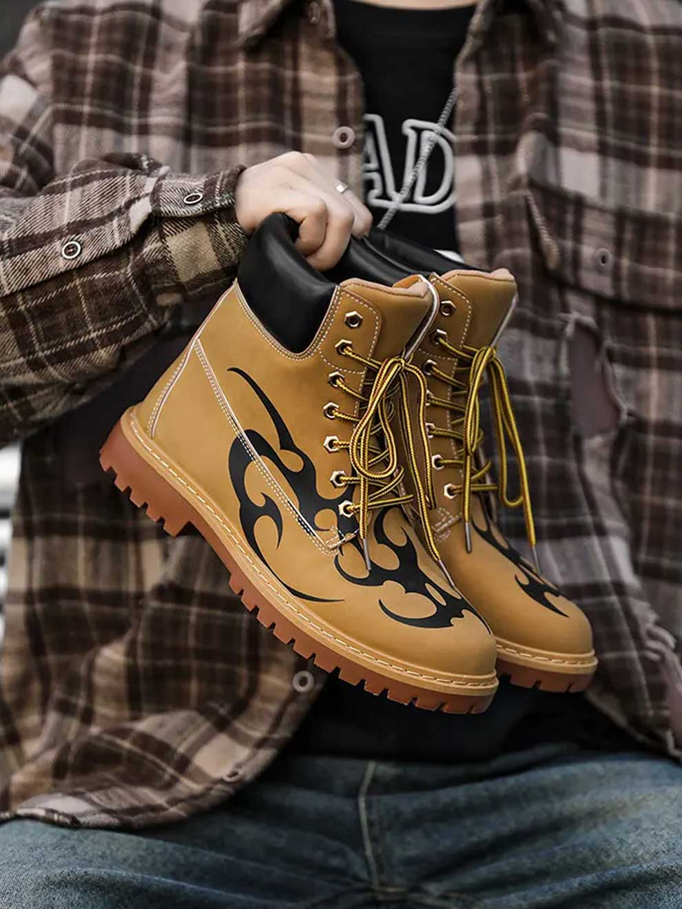Refresh your vibe, be unique, express ur self, break the ordinary with these bold Flame Graffiti High-Top Boots. Fusing classic utility with y2k streetwear energy, these boots are designed for those who refuse to follow the crowd. Whether you’re hitting the pavement or building the ultimate y2k outfits, these kicks ensure you stand out with every step.
