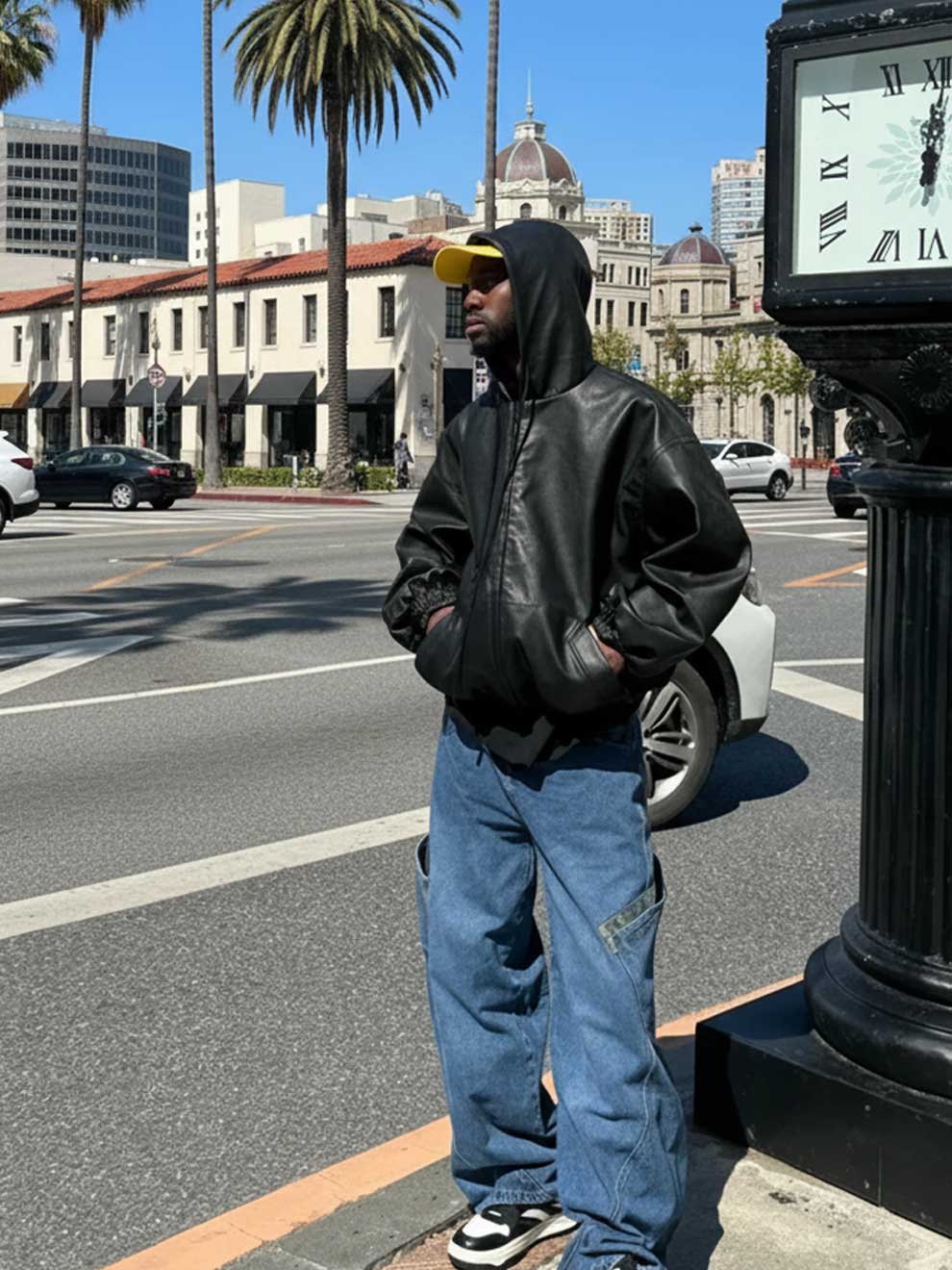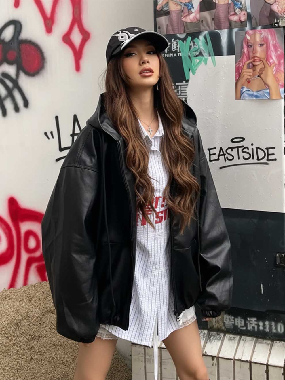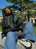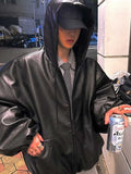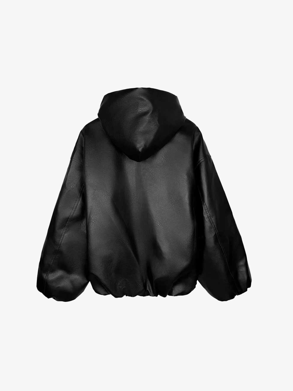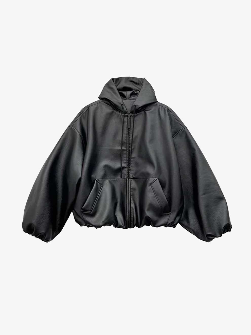 Dare to be the center of attention with our Oversized Black Faux Leather Hooded Jacket, the ultimate statement piece for your wardrobe. Inspired by bold street style and contemporary design, this jacket is all about main character energy.