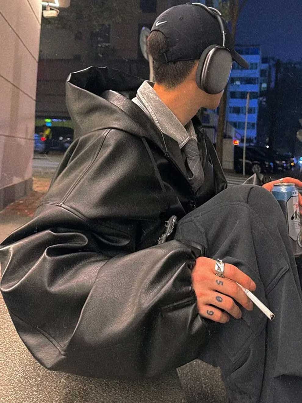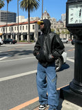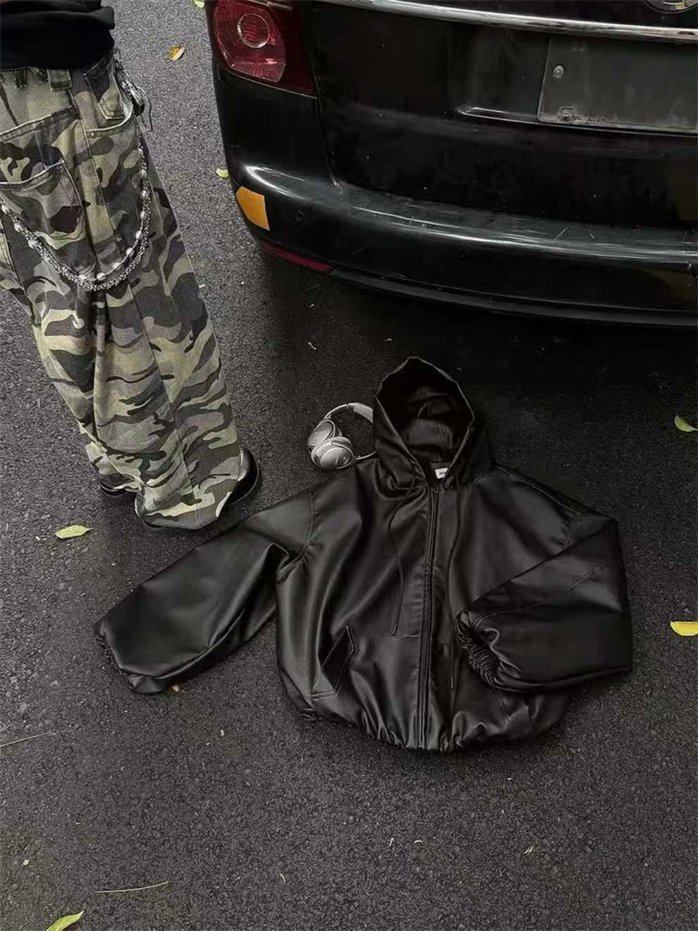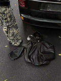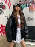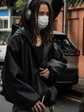Ready to turn heads? This unisex windbreaker features a striking, loose silhouette with voluminous, dropped sleeves, instantly elevating your look. The sleek black faux leather (PU) finish offers a luxe feel and a rebellious edge, perfect for achieving that coveted y2k streetwear aesthetic.
