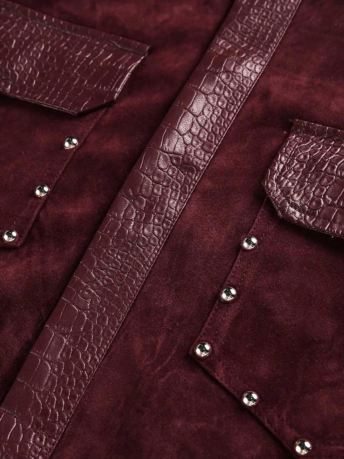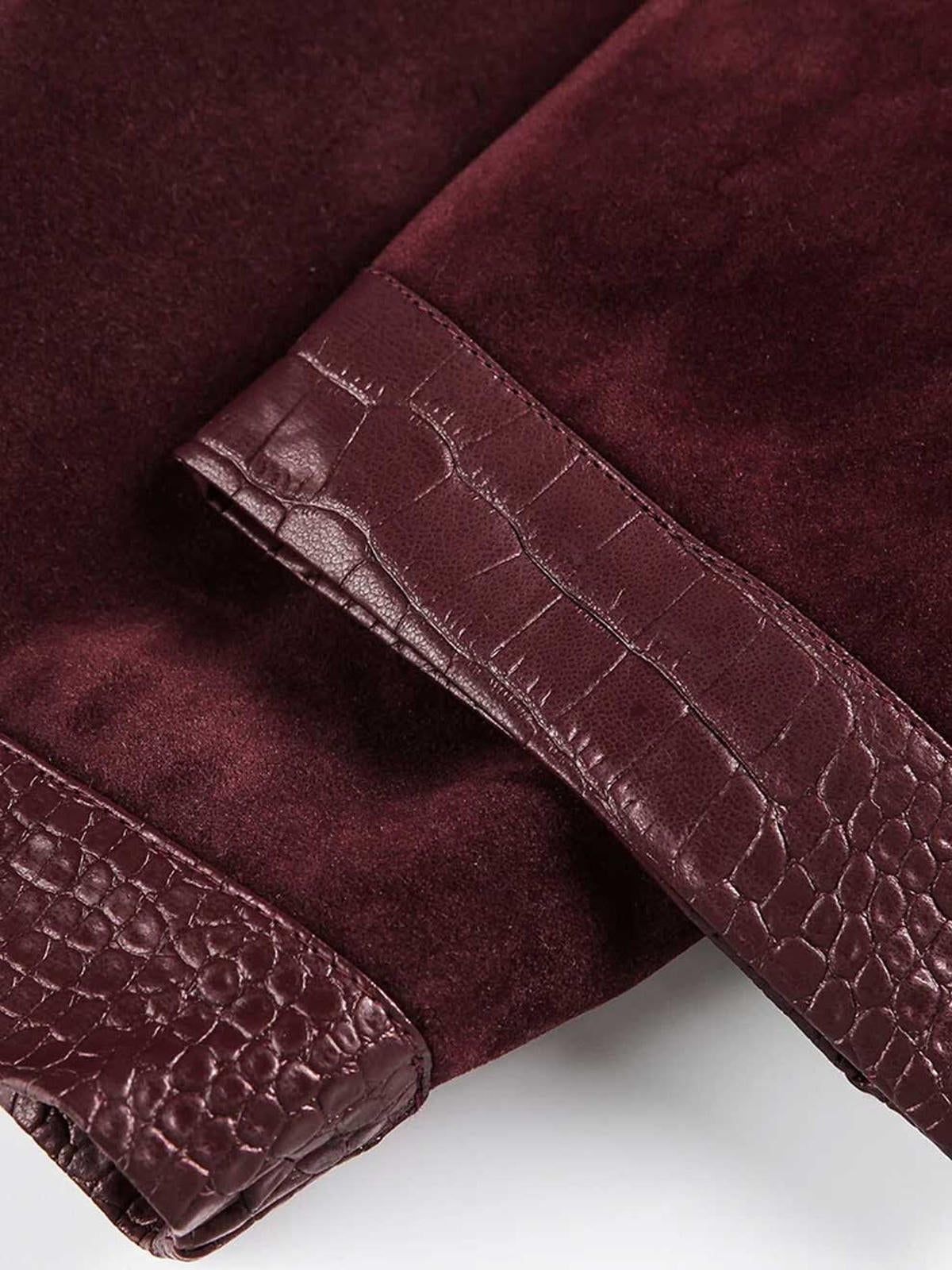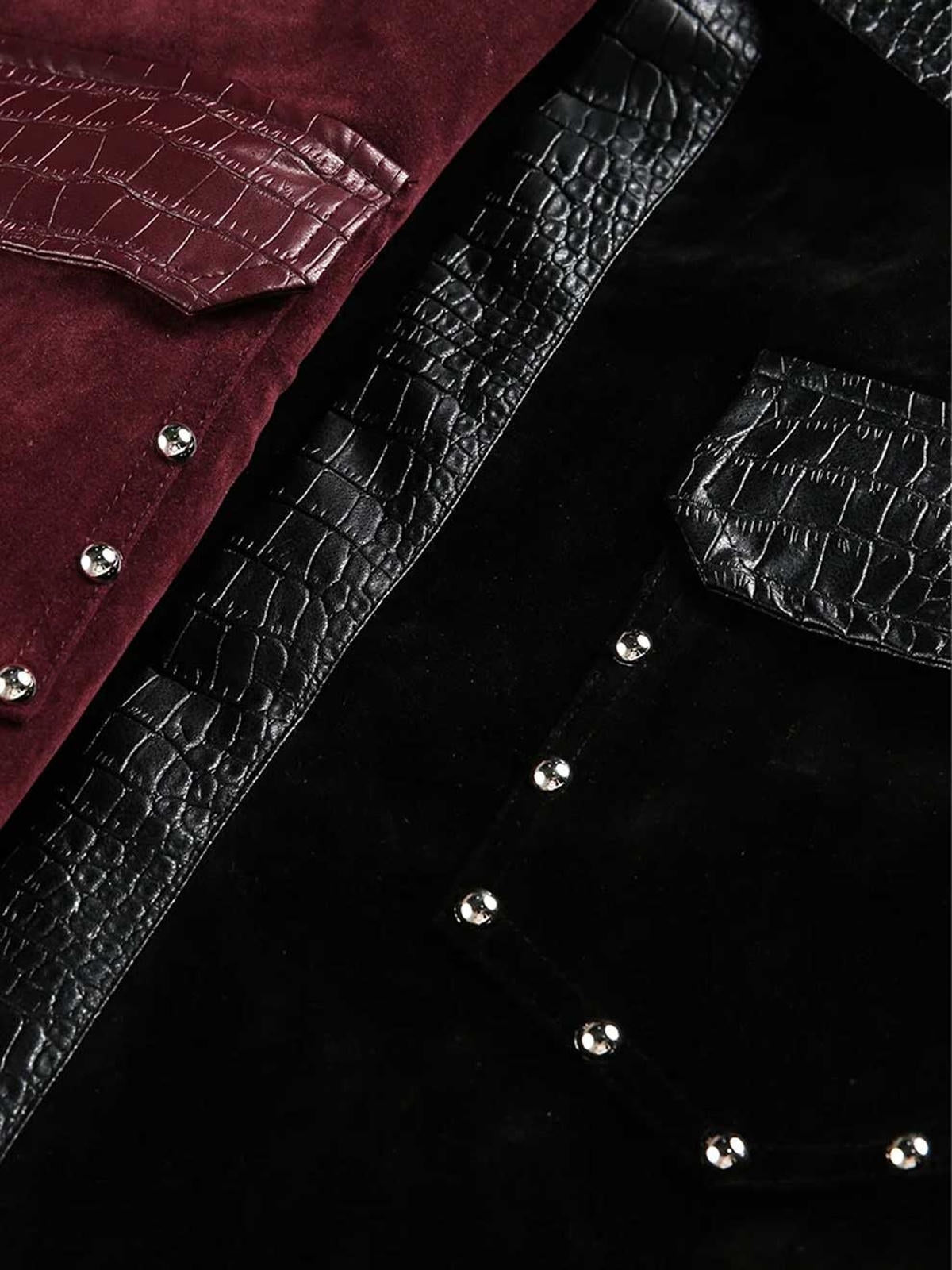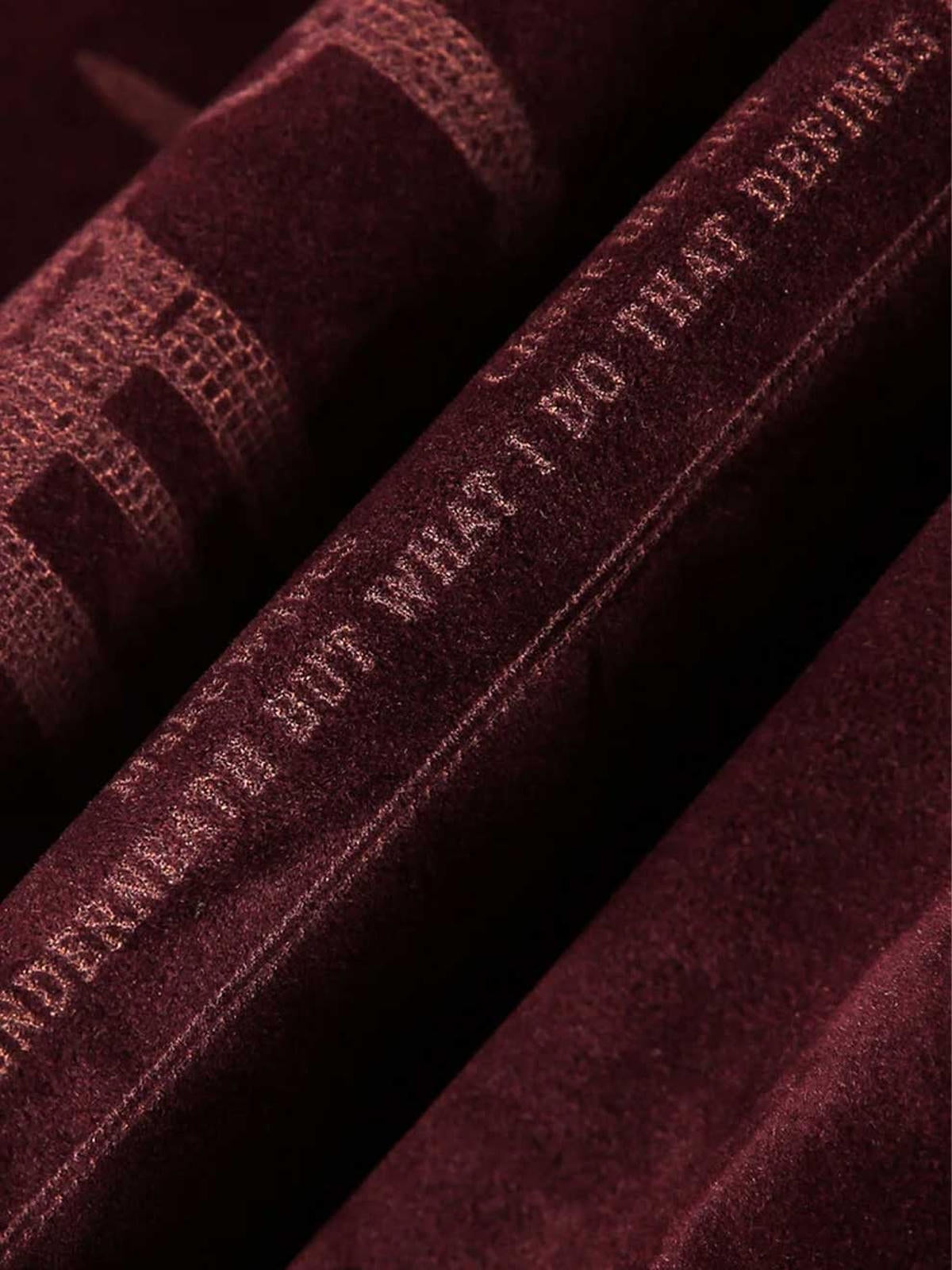 Redefine your style with this striking velvet jacket—the ultimate piece of y2k clothing designed for those who live by no rules. The deep burgundy velvet is contrasted beautifully with textured material on the turn-down collar, placket, and cuffs, creating a high-impact, patchwork aesthetic. Designed to help you be unique and stand out, this jacket effortlessly captures the essence of bold y2k streetwear. The relaxed fit and comfortable interior make it ideal for everyday wear, while the zippered closure ensures a clean silhouette. It's time to create unforgettable y2k outfits and fully express yourself. Add this essential statement jacket to your wardrobe and elevate your look today.