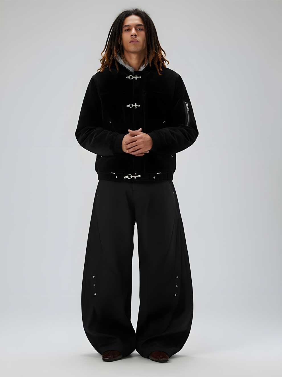 Designed for everyday movement and effortless edge, the Scimitar Straight Leg Trousers blend American retro attitude with modern Y2K streetwear. Crafted from soft, breathable cotton with a midweight feel, they deliver comfort across spring and autumn seasons. The straight-leg cut, zip fly closure, and clean flat front create a versatile silhouette that works for any outfit. Made to be worn your way — no rules, just confidence. Be unique, stand out, and express yourself.
