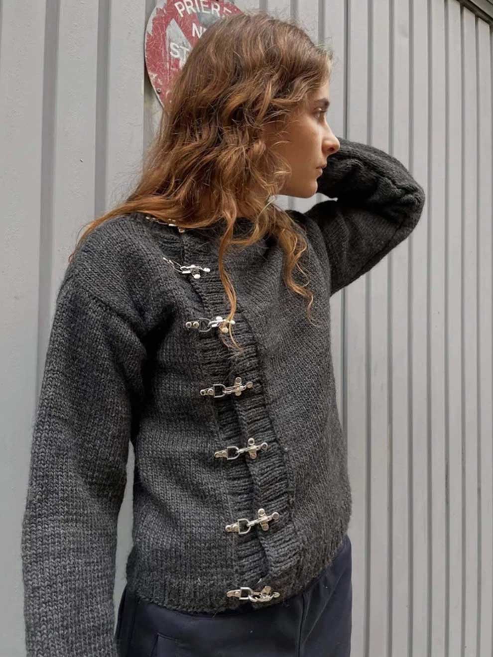 Refresh your vibe and be unique with this heavyweight knitted cardigan, designed for those who refuse to follow the crowd. This isn't just a sweater; it’s a statement. Featuring a bold asymmetric silver-tone clasp closure and a relaxed, loose-fitting silhouette, this piece blends high-end Japanese-inspired aesthetics with gritty y2k streetwear energy.