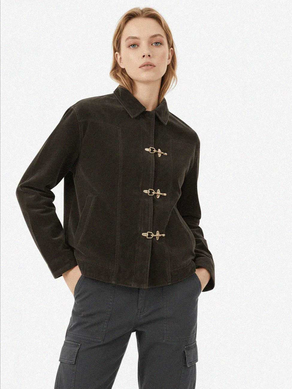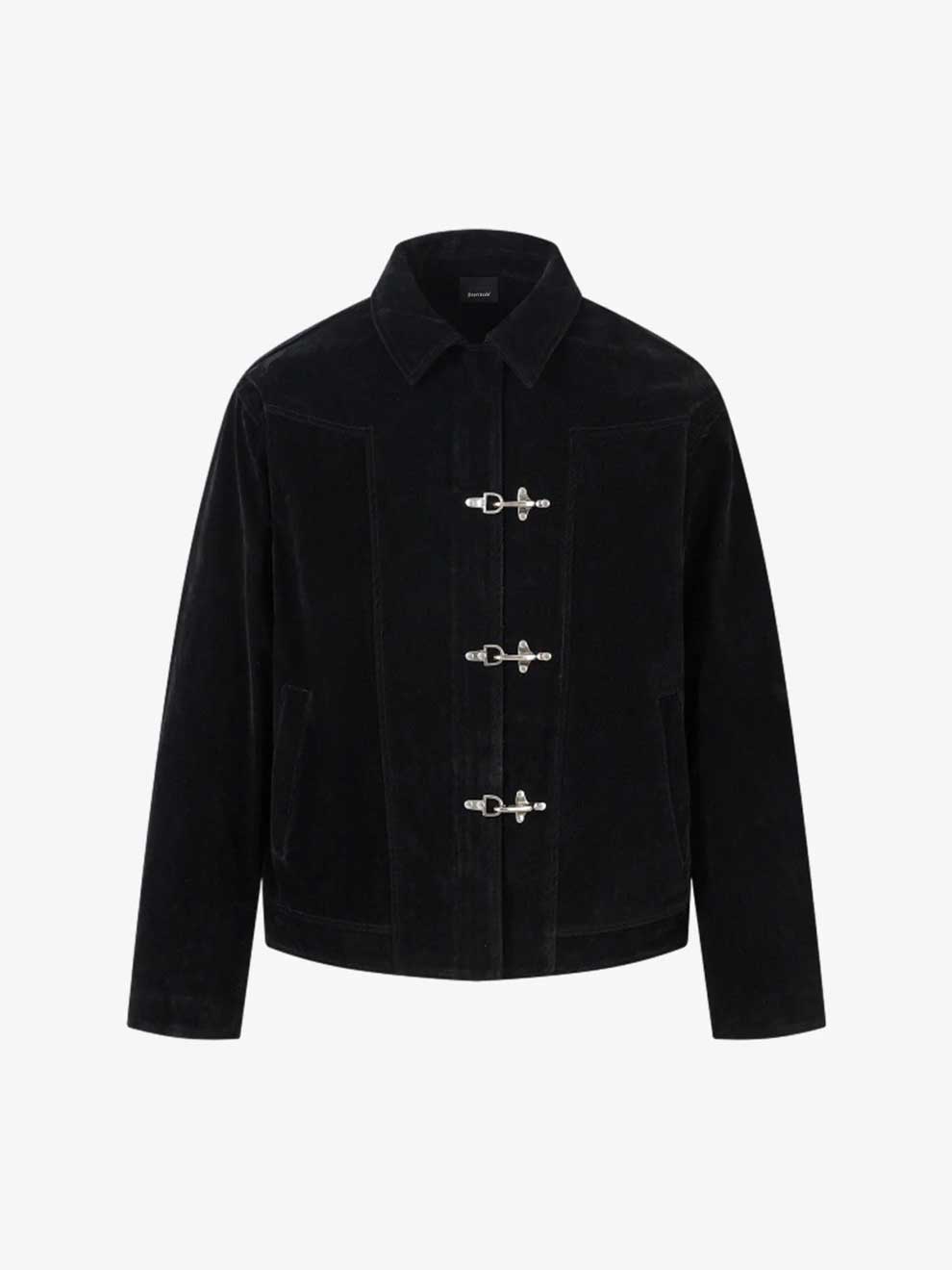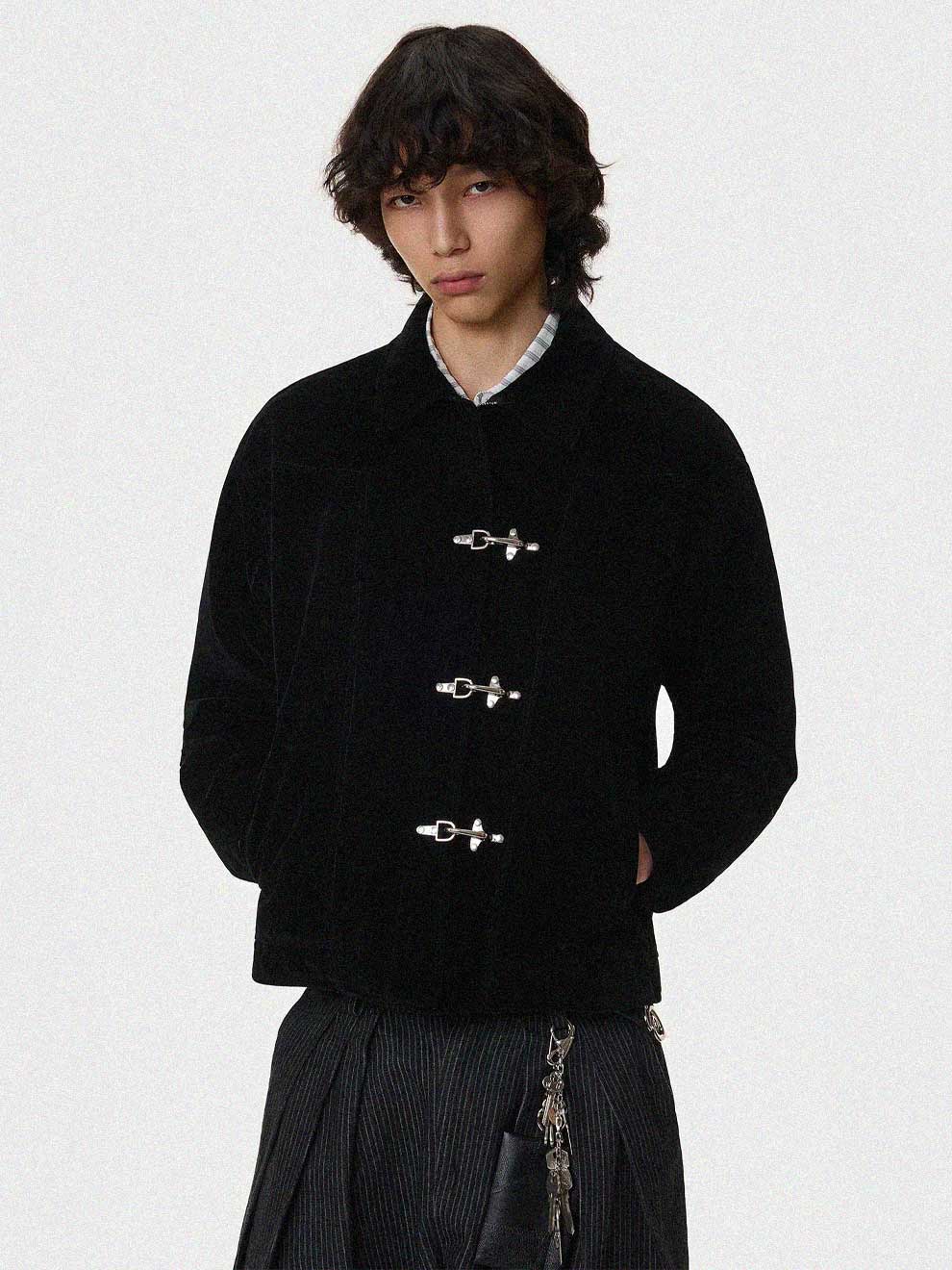 Elevate your seasonal rotation with a piece that merges heritage texture with modern edge. This premium suede-finish jacket features a distinctive dual-closure system—a sleek hidden zipper paired with industrial-inspired metal lobster clips—giving you the ultimate y2k streetwear aesthetic.