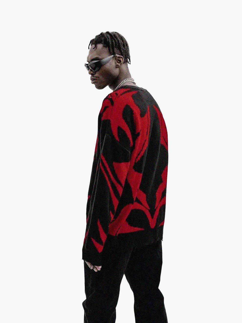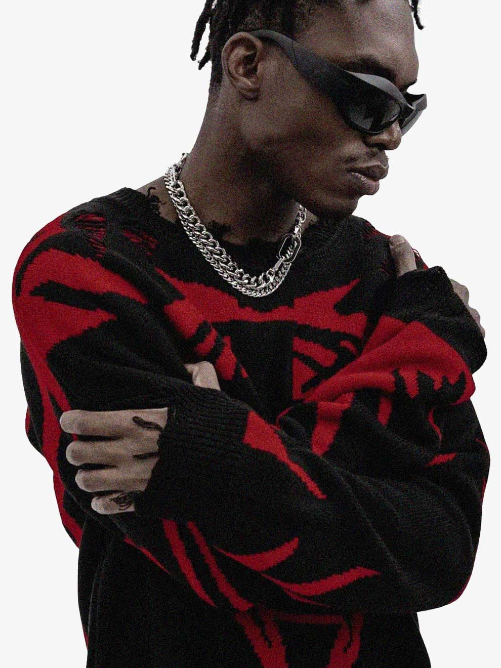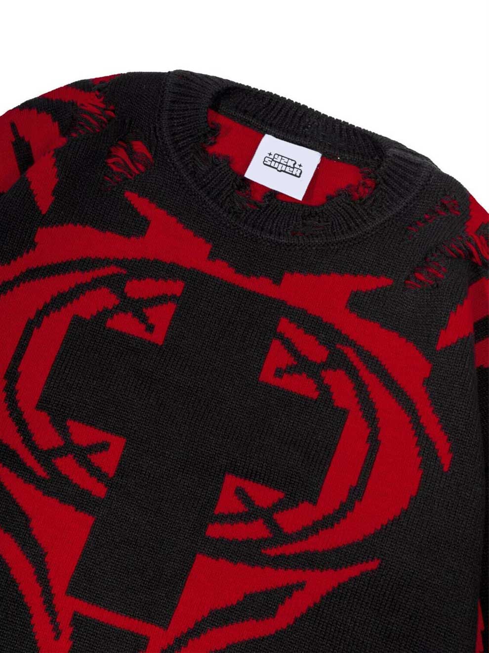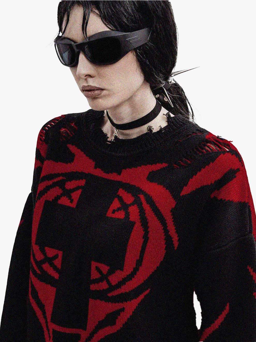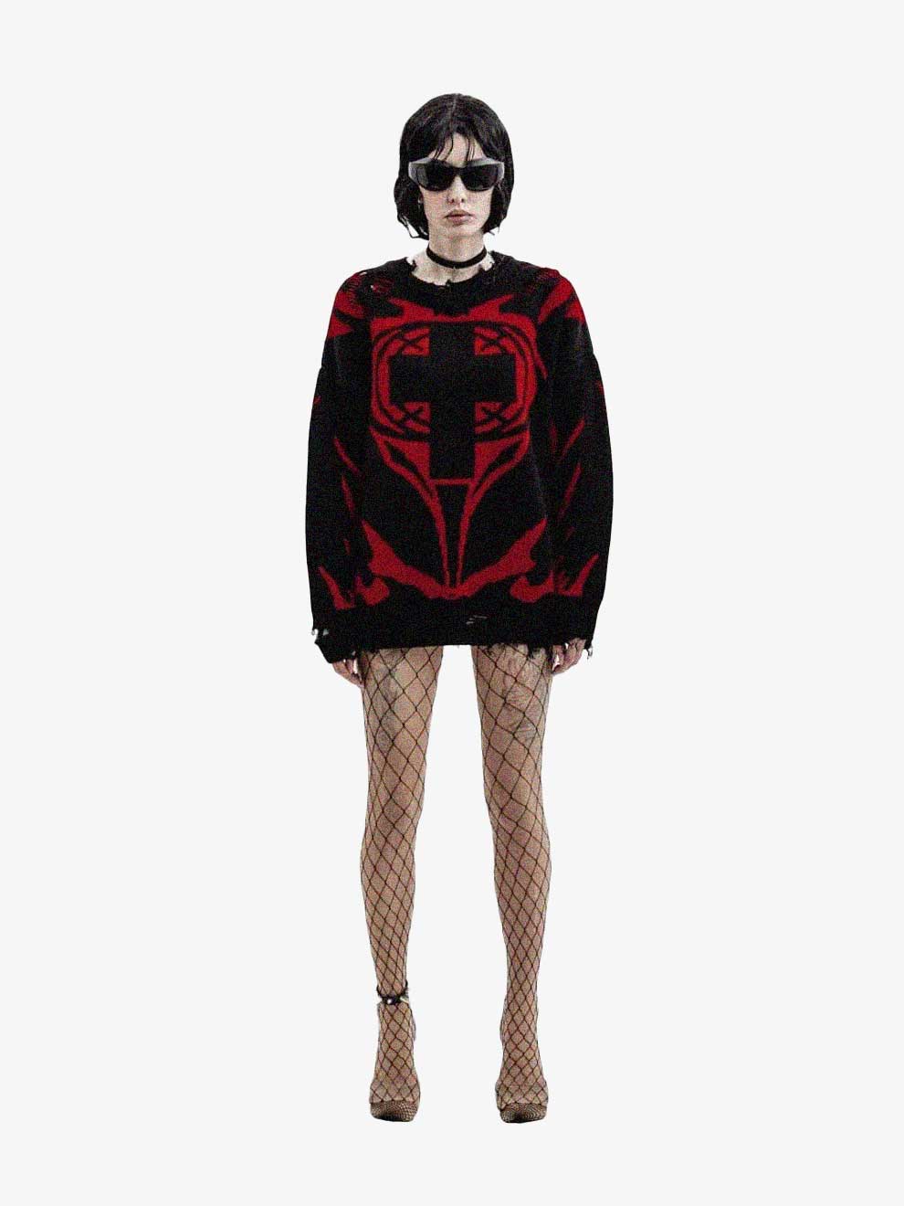 Y2K CROSS KNITTED DISTRESSED SWEATSHIRT