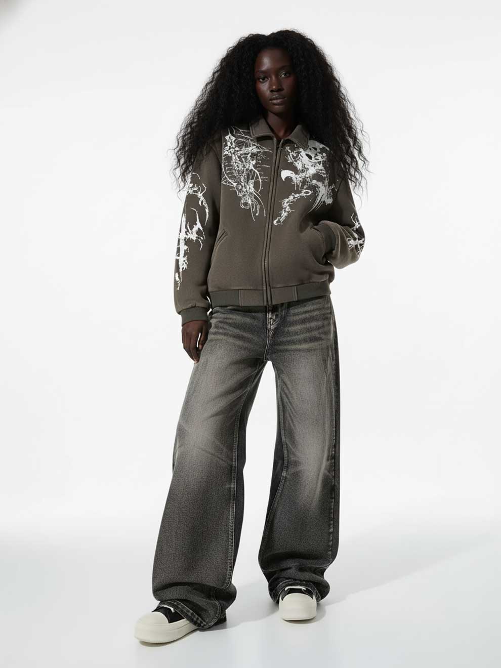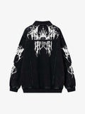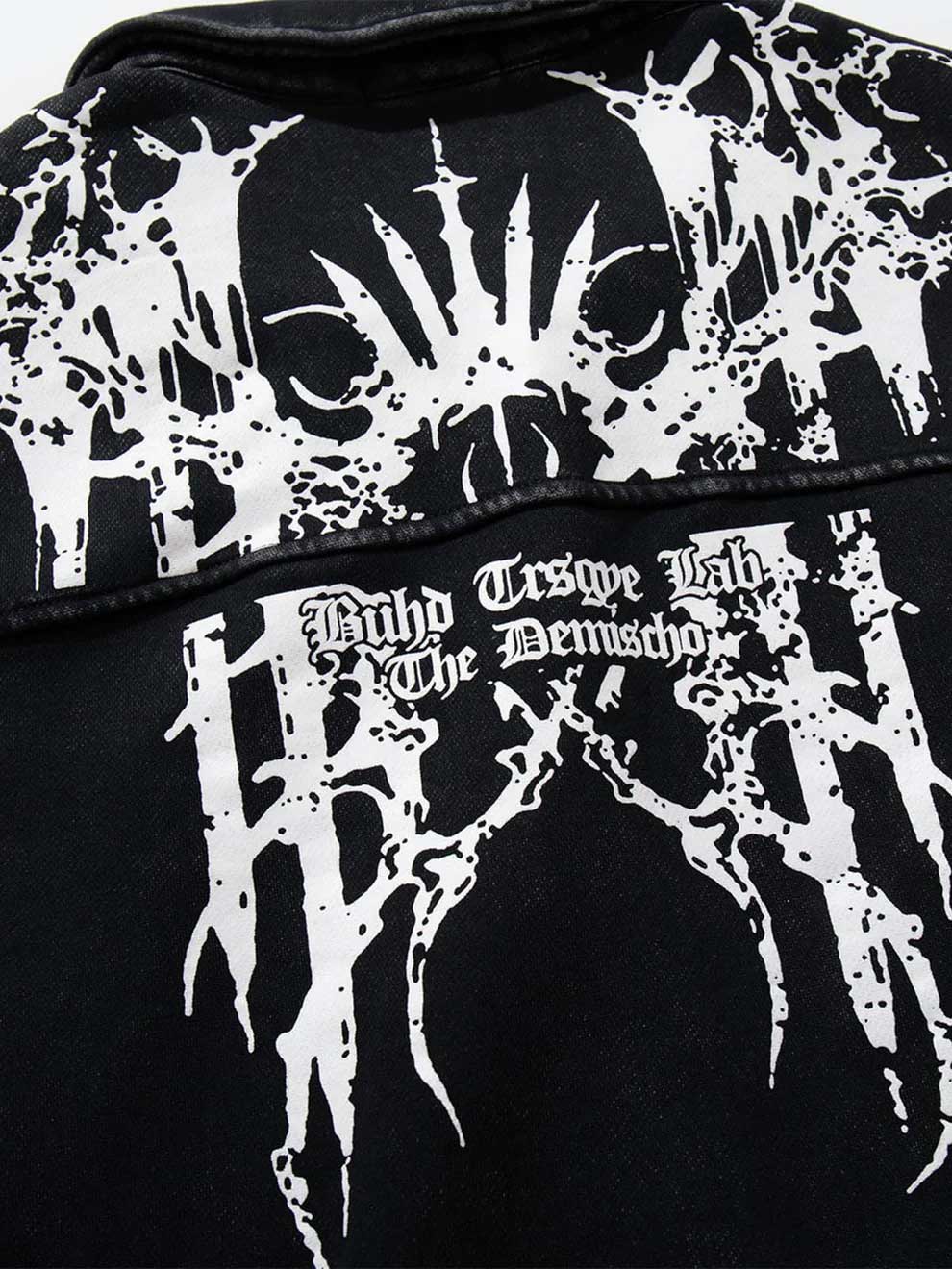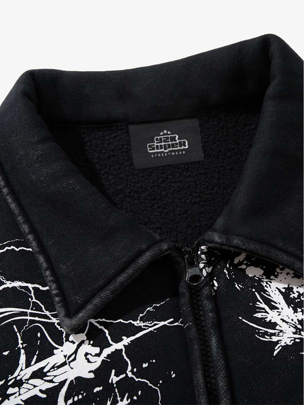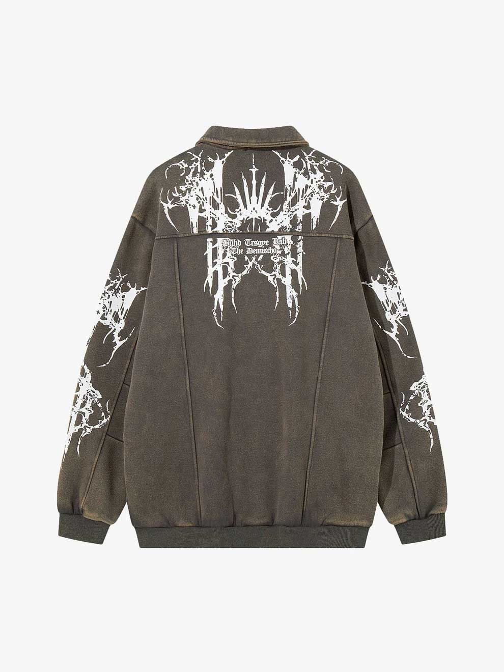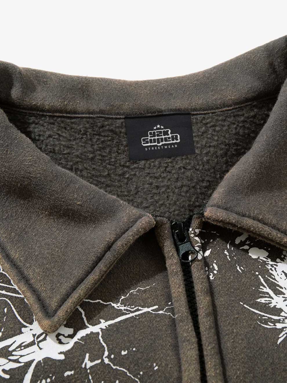 Crafted from a comfortable Polyester blend, this top features a distinctive vintage wash and an intricate, high-contrast skull and abstract print. The full-zip closure and stylish Turn-Down Collar (Lapel) give it the feel of a casual jacket, perfect for layering. Its Punk Style aesthetic and loose type fit make it the ultimate centerpiece for modern y2k streetwear. This standard-thickness jacket with full-length sleeves is ideal for Spring and Autumn daily wear.