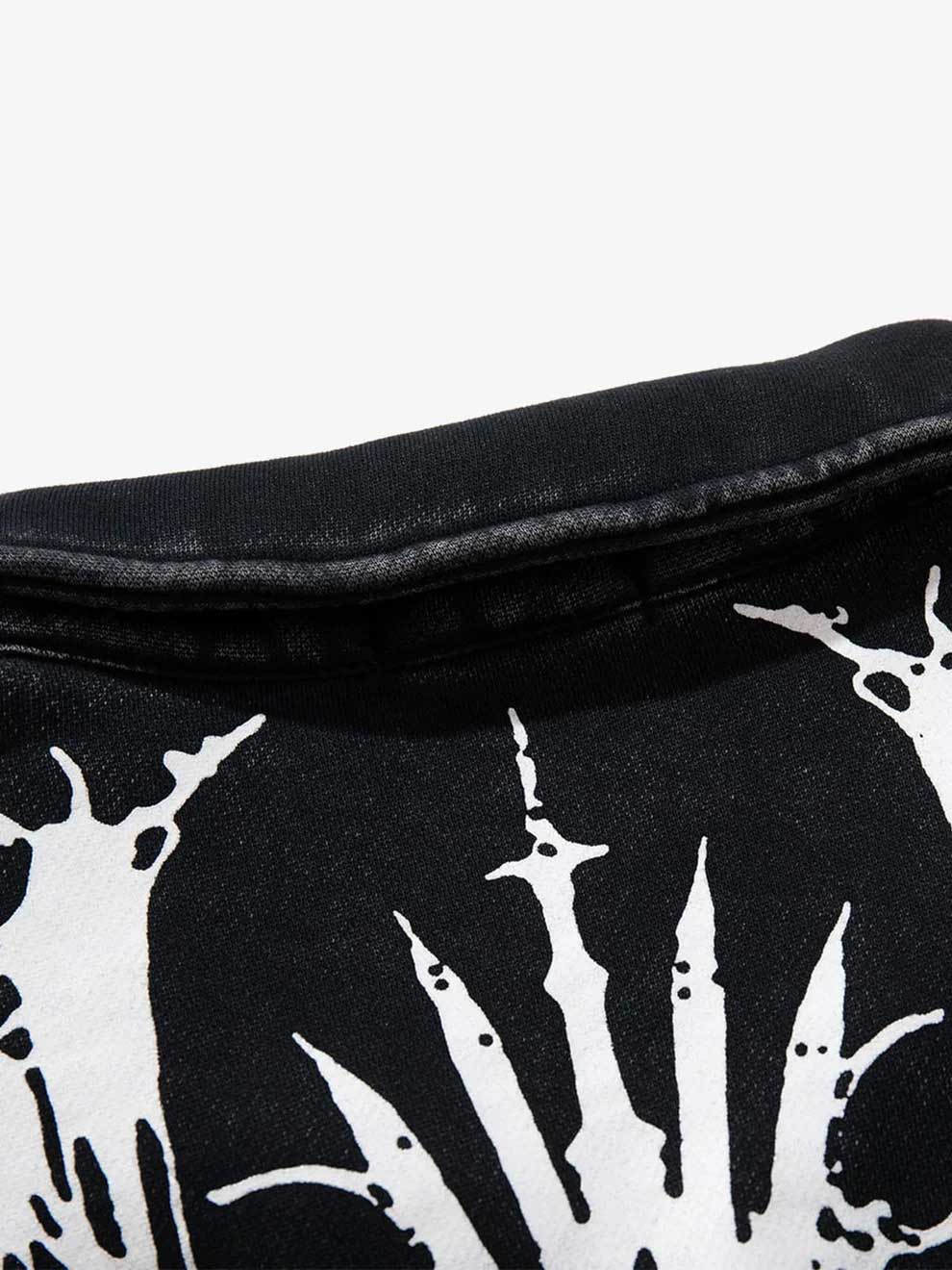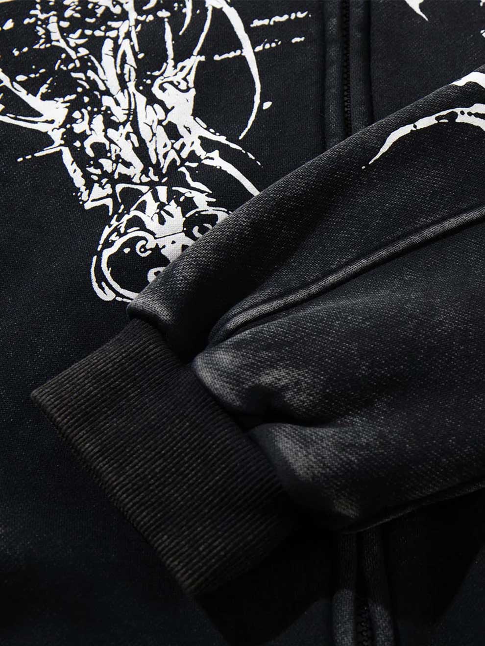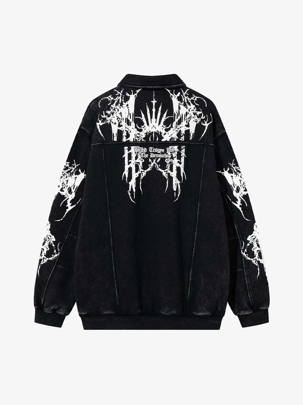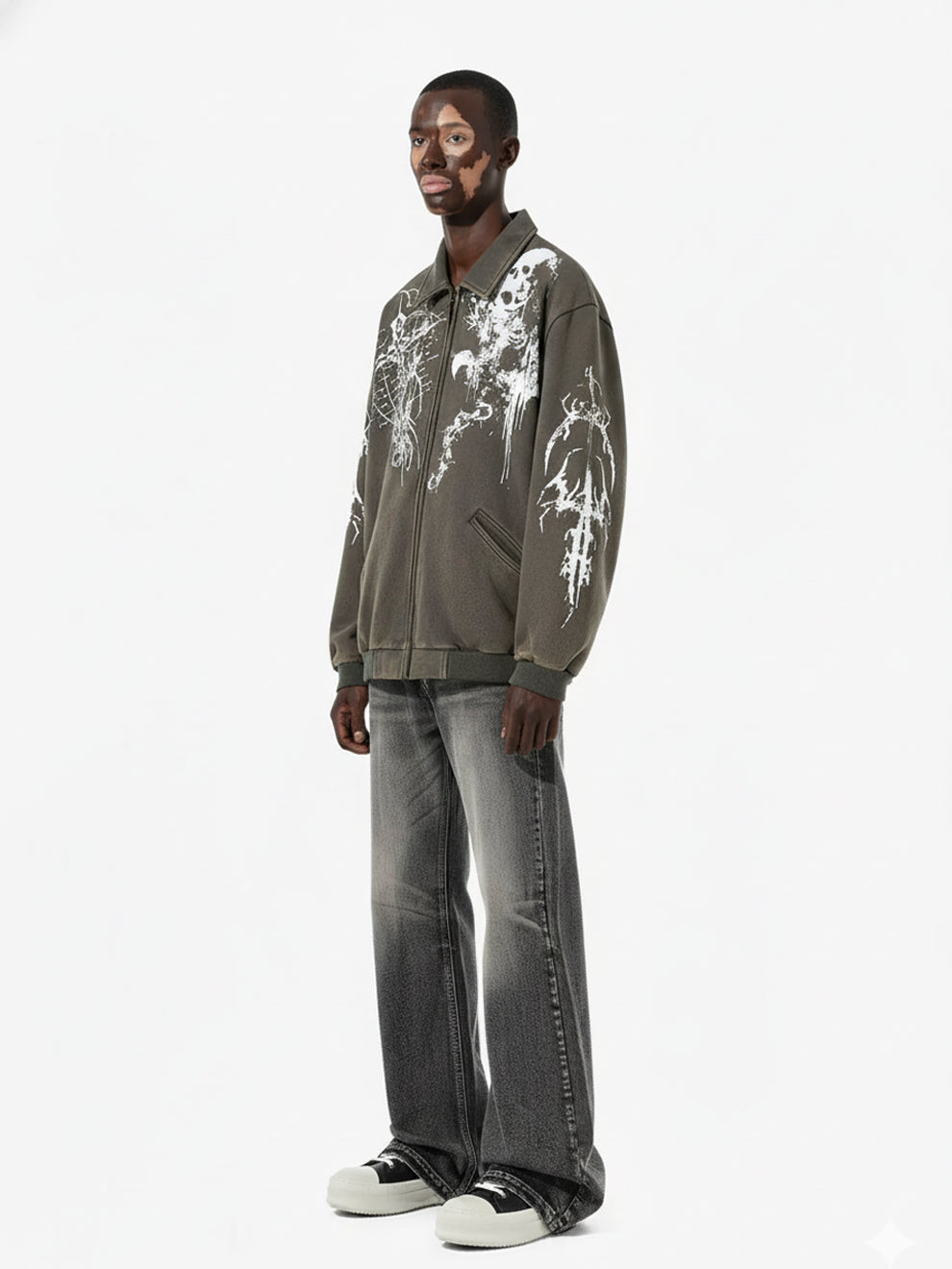Crafted from a comfortable Polyester blend, this top features a distinctive vintage wash and an intricate, high-contrast skull and abstract print. The full-zip closure and stylish Turn-Down Collar (Lapel) give it the feel of a casual jacket, perfect for layering. Its Punk Style aesthetic and loose type fit make it the ultimate centerpiece for modern y2k streetwear. This standard-thickness jacket with full-length sleeves is ideal for Spring and Autumn daily wear.
